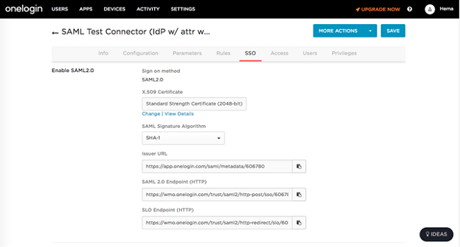 - From OneLogin, using the above Single Lougout URL obtain the Issuer URL